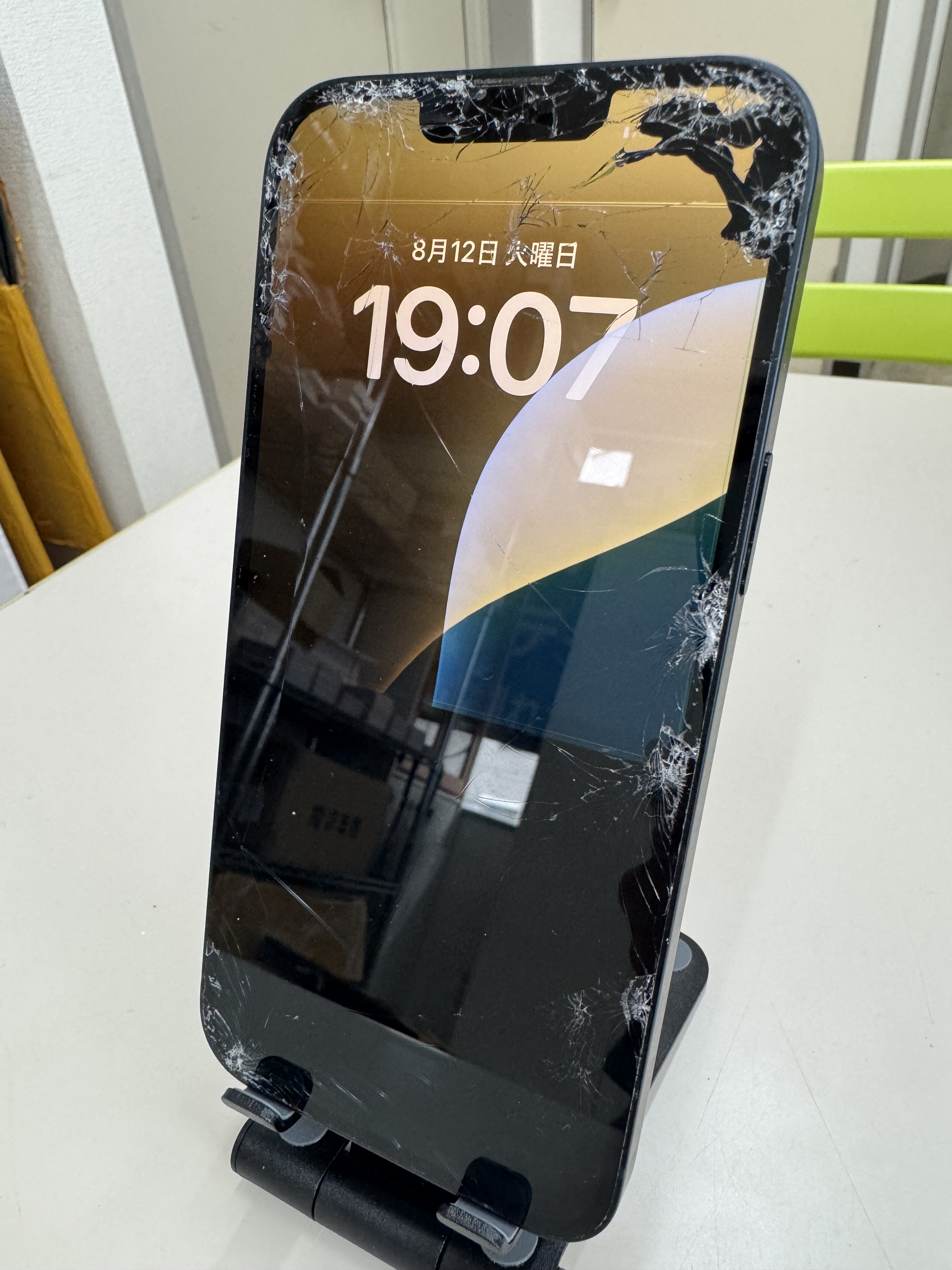 土浦店 iPhone14 Plusの重度液晶画面修理が14,080円!即日対応でスピード復旧