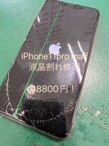 先日はiPhone 11 Pro Maxの液晶画面を受け付けました。下の写真のような状態からでも20分程度で修理することができます!