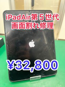 本日は最新機種のiPadAir第5世代の画面割れ修理のご案内です。