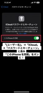 まずは「設定」アプリで一番上の「(ユーザー名)」→「iCloud」→「パスワードとキーチェーン」と進み、「このiPhoneを同期」を有効にします(iCloudのログインが必要です)