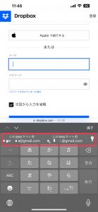 そのメッセージを誤って消してしまったりそもそも表示されず手打ちの画面になってしまっても、キーボードの上に保存済みのパスワードが提案されるのでそれをタップすることで自動入力が可能です!