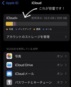 容量の見方は、設定→一番上の名前のところをタップ→icloudをタップで見れます!