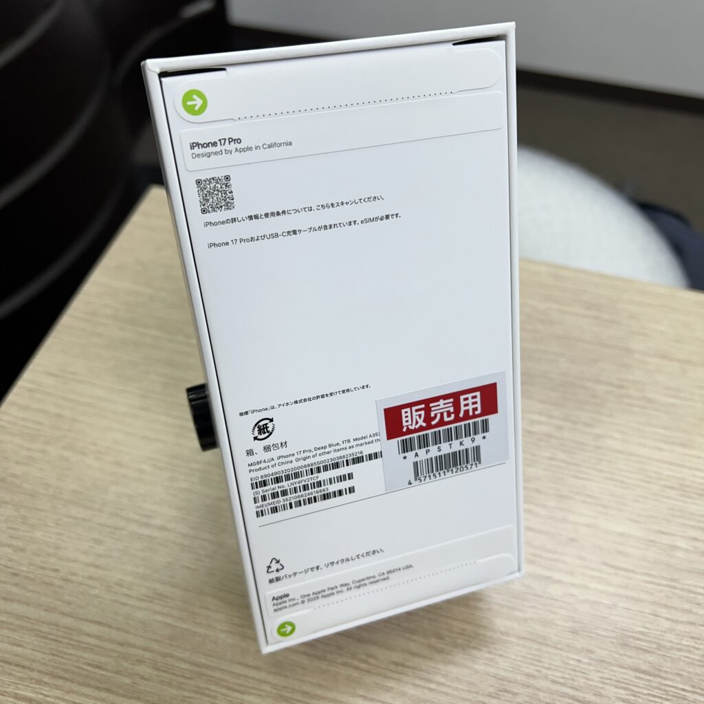 本日、iPhoneステーション市原五井店にて、Appleの最新モデル「iPhone17 Pro 1TB(新品未開封品)」を、