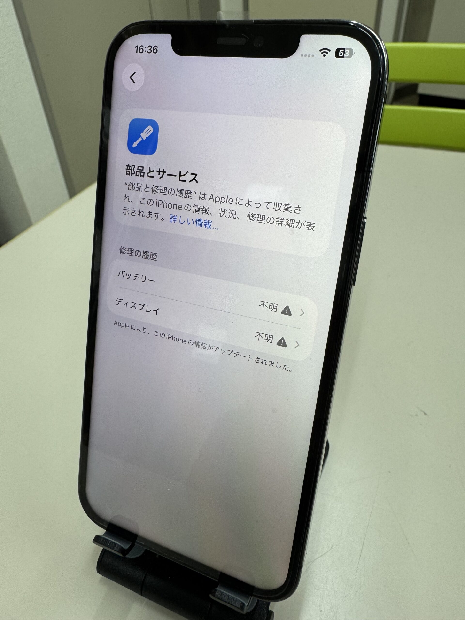 - iPhone12ProMax128GB非純正部品交換端末ジャンク品をお買取りさせていただきました。ありがとうございました。